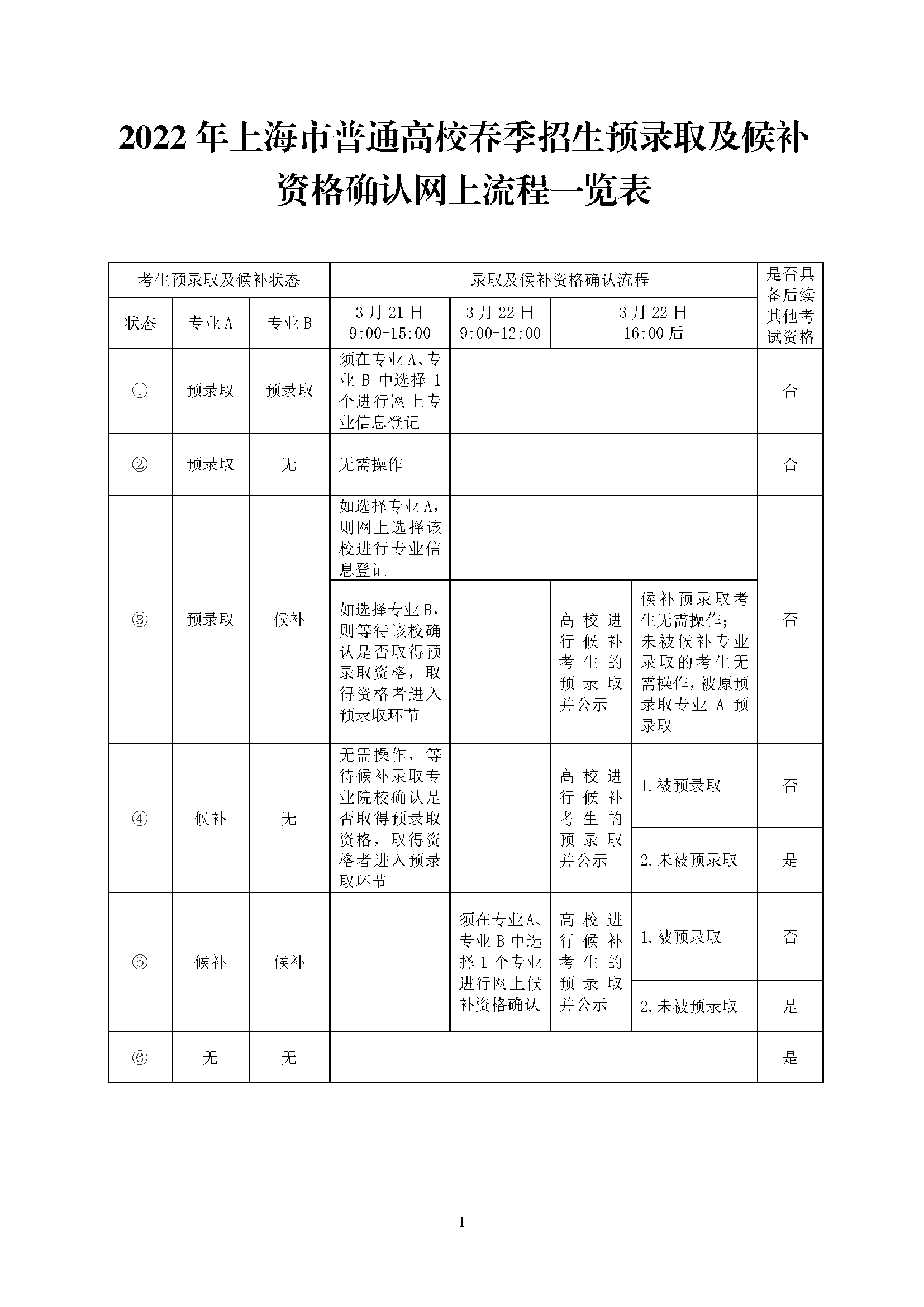 5.取得两个专业候补录取资格的考生,须在3月22日9:00-12:00,在网上选择其中一个专业进行候补资格确认,如院校确认其最终取得预录取资格,无需操作,默认被预录取(注意:确认候补资格的考生不一定会被录取,要根据该校预录取考生的录取确认情况而定)。